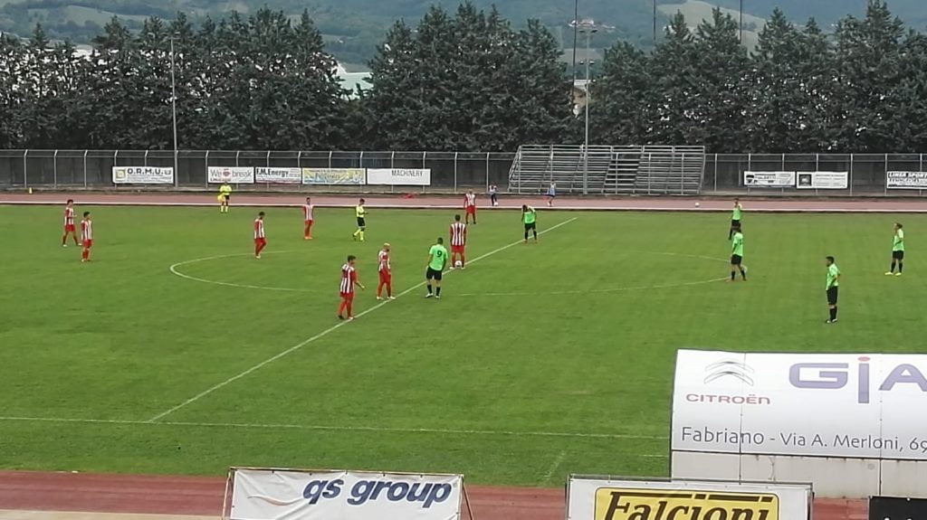 L’Atletico Gallo sblocca alla mezz’ora col veterano Rizzato, ma il Fabriano Cerreto sul piano del gioco non demerita e impatta, come due settimane fa a Montefano, con un calcio di rigore di Montagnoli.