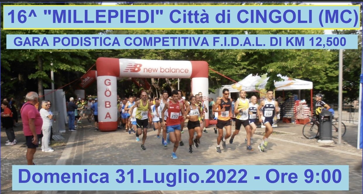 CINGOLI, 28 luglio 2022 – Dopo due anni di assenza a causa della pandemia, torna sul Balcone delle Marche la storica corsa podistica “Millepiedi” Città di Cingoli. Domenica prossima, 31 luglio, ci sarà la XVI edizione della gara regionale su strada organizzata dall’Atletica Cingoli e indetta dalla Fidal Marche.
