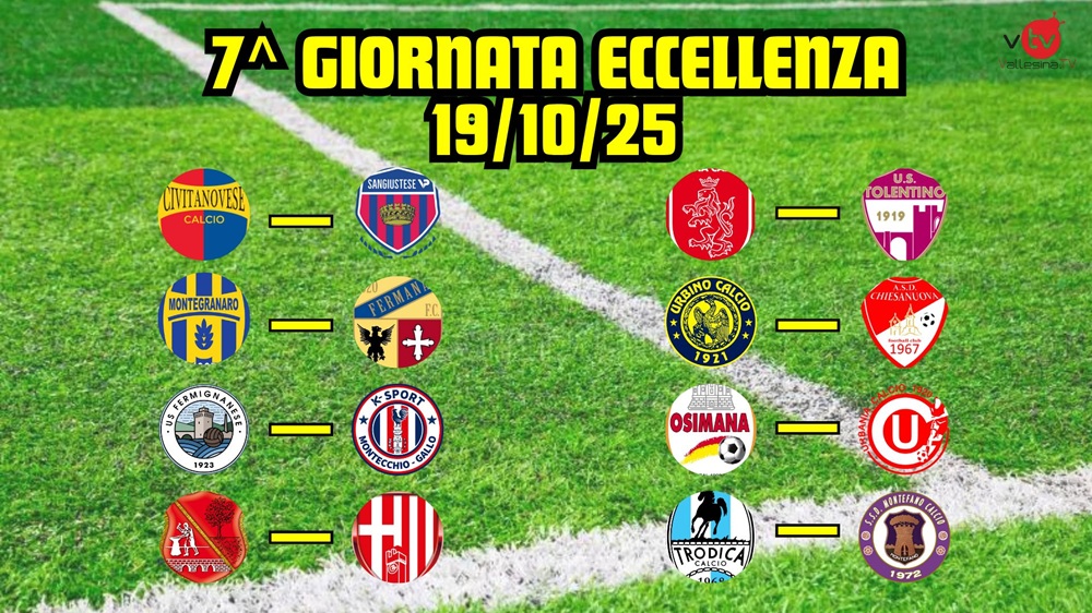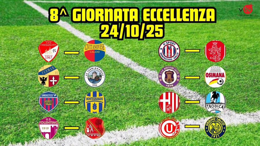 OTTAVA GIORNATA: Aurora Jesi-Labor, Olimpia Ostra Vetere-Monsano, Rosora Angeli-Real Sassoferrato, Sampaolese-Terre Del Lacrima, Serrana-Urbanitas Apiro, Corinaldo-Villa Strada, Valle Del Giano-Chiaravalle, Monte Roberto-Avis Arcevia