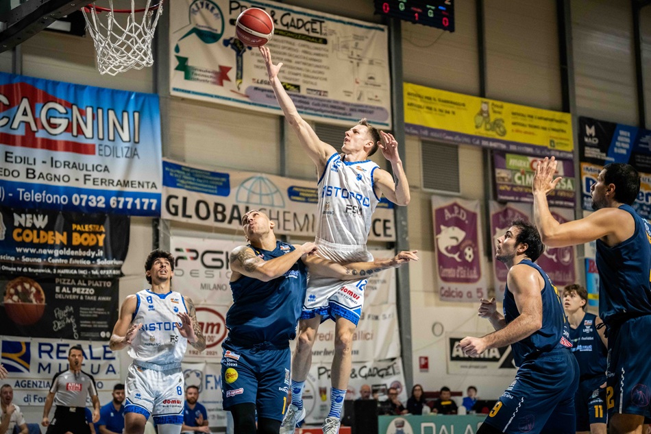 Dopo il successo al fotofinish di mercoledì contro Ferrara, i cartai vengono fermati nell’ultimo giro di lancette dal Loreto Pesaro con le triple determinanti di Graziani.