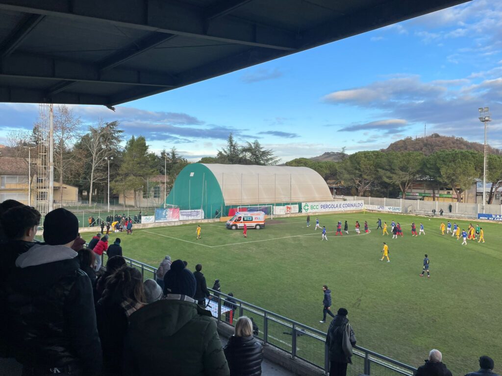 PERGOLA, 8 dicembre 2024 – Pergolese-Biagio Nazzaro è stata sospesa e rinviata a data da destinarsi. Al 16’, dopo un contrasto, il giocatore locale Salciccia ha battuto la testa contro il muretto di protezione del campo. Immediatamente soccorso dai volontari della Croce Rossa presenti per l’assistenza sanitaria, è stato trasportato in ambulanza in eliambulanza all’ospedale di Torrette di Ancona.