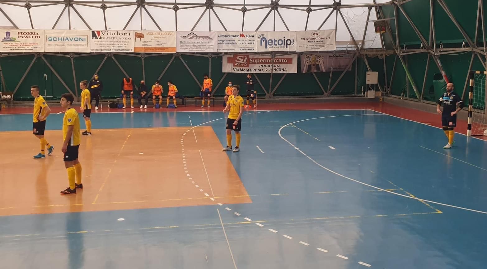 Gli anconetani, passati in vantaggio a pochi secondi dall’inizio della partita, dominano il primo tempo sia in fase di costruzione che in quella di finalizzazione, finendo il parziale in vantaggio di 5-0.