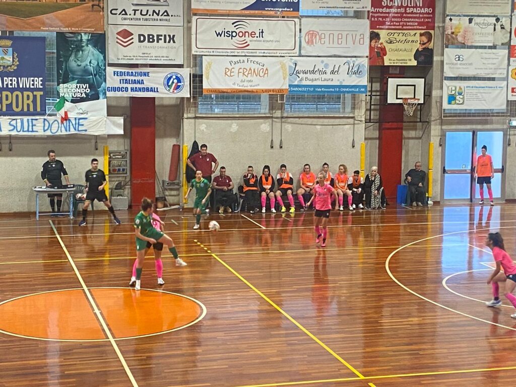 Nei primi minuti di ripresa, le locali ripartono con il piede sull’acceleratore. Capitan Magnanti al 1’ ci prova con un tiro da fuori ma il portiere si stende e manda in angolo. Risponde Caprarica con il fendente di Doria senza successo e subito dopo arriva il tris rosanero. Su assist di Loth dall’angolo, in mischia Pini tira. La palla sfugge a Lazzari e va in rete. Il dominio chiaravallese prosegue incontrastato e arriva pure la quarta rete firmata Venturini. Negli ultimi 8’ le avversarie tentano il tutto mettendo il portiere in movimento ma l’unico squillo viene da Vizcaino che manda di poco fuori. A meno di 3’ dalla fine Moczik fa una bella parata su combinazione del duo Jornet/ Vizcaino. A 32” Venturini firma la quinta rete.