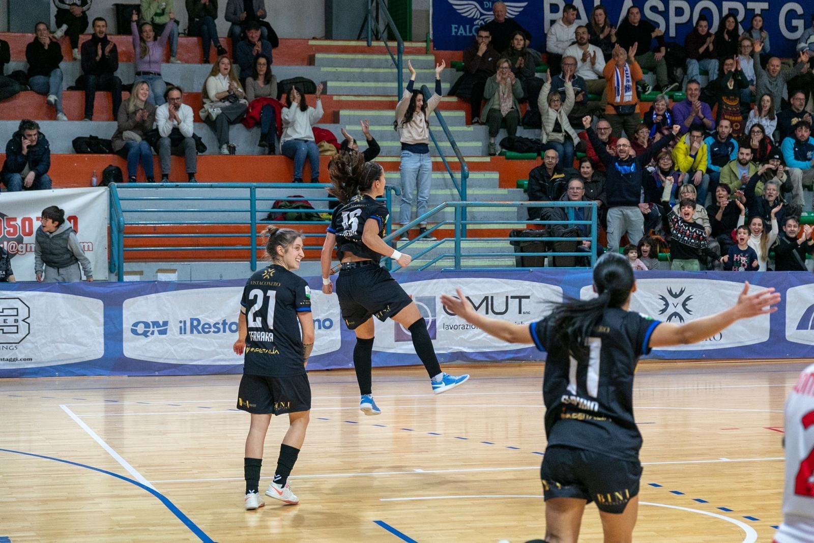 Nel secondo tempo, le falconaresi continuano a spingere e trovano il poker con Ferrara, che scaglia un destro di fino alle spalle del portiere avversario. La serata della numero 21, però, si macchia al 33’, quando viene espulsa per doppia ammonizione, un’assenza che peserà nel big match contro il Pescara alla ripresa del campionato.