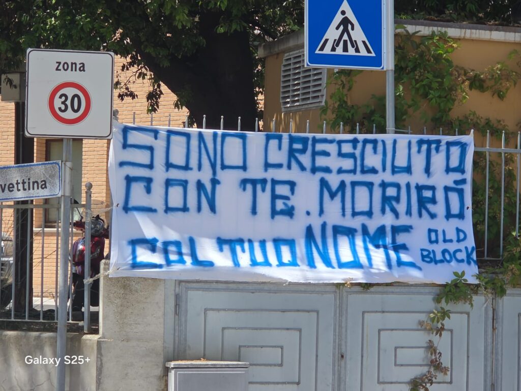 Lo striscione dei tifosi del Montemarciano