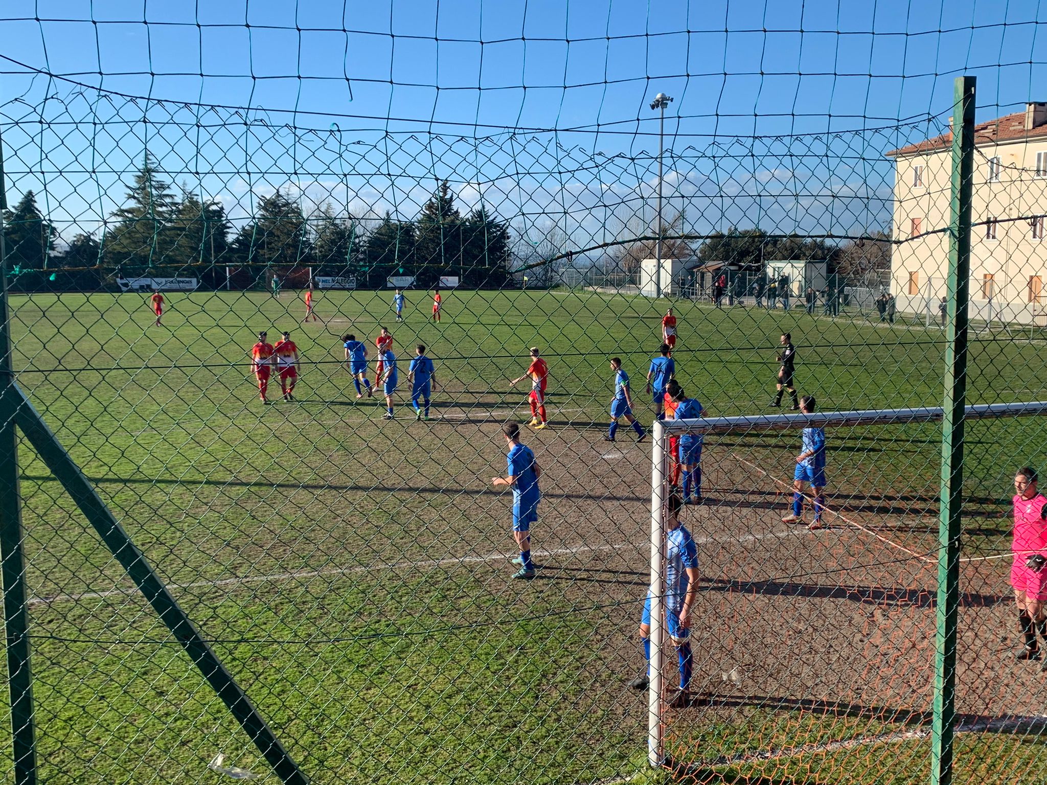 I biancazzurri passano in vantaggio dopo 10 minuti. Gorini si presenta per battere un calcio di punizione, la parabola beffarda, spinta da una raffica, supera Pepe ed è 0-1. Insistono gli ospiti: qualche istante dopo, infatti, ci prova Lucci in spaccata, senza centrare la porta.