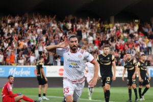 Il giocatore del Sudtirol Merkaj festeggia la rete del pareggio (foto profilo Fb Ascoli Calcio)