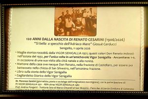 Invece è in arrivo in Argentina una serie di cimeli per ricordare degnamente Renato Cesarini, a 120 anni dalla nascita avvenuta a Senigallia, anche a Rosario, dove ci sono una società e un museo in via di realizzazione a lui intitolati: nella targa riportata, è evidenziato quanto inviato e chi ha contribuito all’iniziativa.