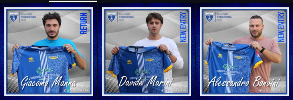 PRIMA CATEGORIA – Montemarciano, arrivano i classe 2005 Tommaso Ginesi, Federico Moschini e Davide De Rosa. L’attaccante dal Cupramontana (ex Castelfrettese e Matelica) e i due giocatori dalla Juniores del Marina rinforzano la squadra di Caccia, ancora in attesa di un eventuale ripescaggio.