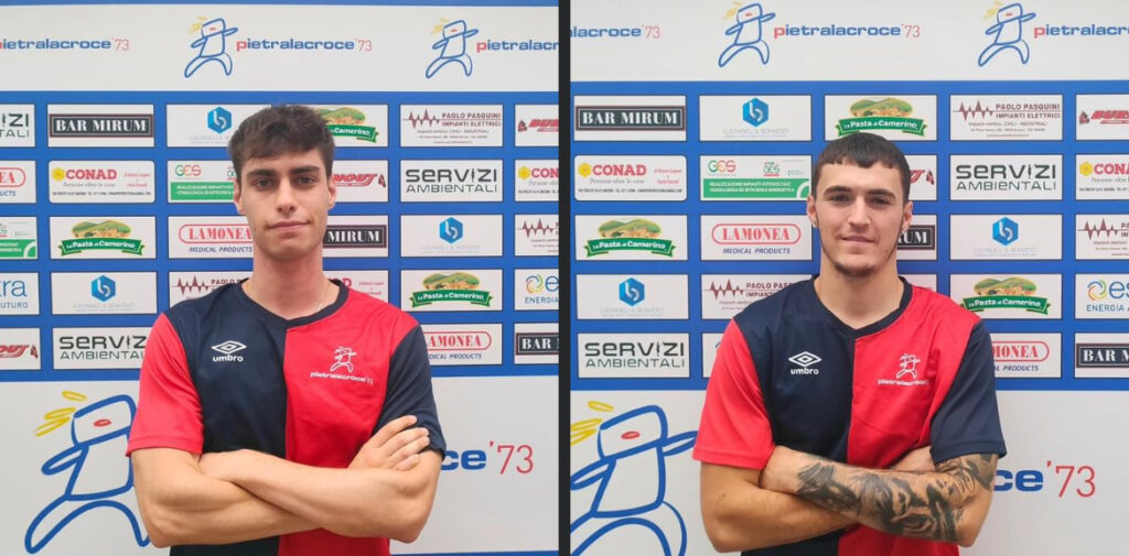 Ore 10.00 – PRIMA CATEGORIA – Francesco Carbonetti e Matteo Polenta sono due nuovi giocatori del Pietralacroce. Il centrocampista classe 2004 dal Candia Baraccola Aspio e l’attaccante, sempre di 20 anni ma dai Portuali, rinforzano la squadra del presidente Saracchini.