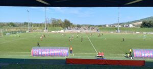 Il caldo si fa sentire e il ritmo inevitabilmente è basso, al 22′ c’è anche il cooling break. Poi ecco le emozioni. Al 28′ Trabelsi gira di testa su punizione e palla che sfiora il palo. Nemmeno 60 secondi e altro brivido, conclusione velenosa di Carnevali, Santarelli è coperto ma ci arriva, angolo. Sempre su palla da fermo, replica ospite al 36′ quando Mosquera salta indisturbato ma manda alto. Il Chiesanuova è superiore e più brillante, al 39′ Sbarbati di fisico vince un duello e si presenta in area, botta e super risposta di Santarelli.