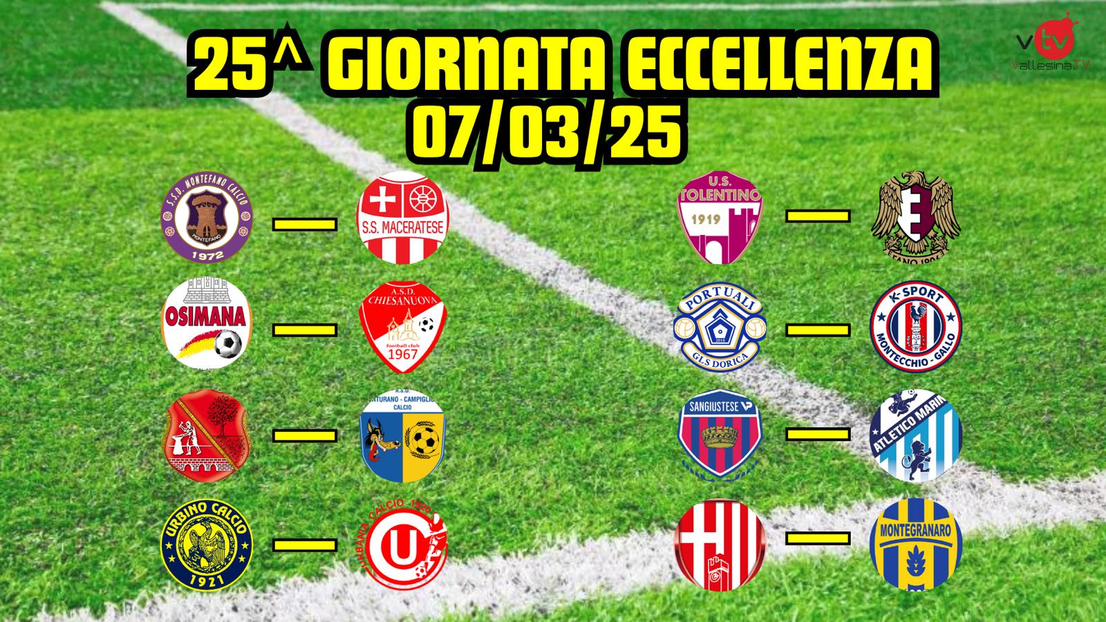 Vallesina, 7 marzo 2025 – Altra domenica da riflettori accesi in Eccellenza. Per la venticinquesima giornata in arrivo domenica, si scenderà in campo al di sotto dell’accoppiata Maceratese-K Sport. Per cercare di mantenere lo status, il doppio totem in cima alla classifica si dividerà sui campi di Montefano e Portuali. I biancorossi hanno ritoccato la vetta dopo i due pareggi della formazione di Magi e raggiungeranno i viola per orientarsi ulteriormente verso la ritrovata direzione. I pesaresi, attesi al ‘Del Conero’, cercheranno di nuovo i tre punti dopo gli stop con Osimana e Sangiustese. Rimanendo sul versante anconetano del massimo campionato regionale, ecco Osimana-Chiesanuova. Al ‘Diana’, ore 15.00, i senzatesta inseguono un successo che potrebbe pesare doppio. Anche in virtù degli altri scontri diretti sparsi per il palinsesto della quintultima uscita. Esempio lampante, il big match del ‘Montefeltro’ tra Urbino ed Urbania. Una delle due potrebbe uscire dismessa dal derby urbinate, concedendo alle altre contendenti playoff spazio di manovra in vista del gong finale. La speranza di far rientro nei ballottaggi per i futuri spareggi accomuna Sangiustese e Montegranaro. Le due formazioni calzaturiere volgeranno al cospetto di Atletico Mariner e Matelica. I rossoblù apriranno ai marineros le porte di Villa San Filippo. I cugini in gialloblu sono attesi dal team di Ionni al ‘Giovanni Paolo’. Oltre alla passerella Tolentino-Alma Fano, di cui non sono previsti colpi di scena da asserire al campo, chiuderà il programma Fabriano Cerreto-Monturano Campiglione. I fermani, visto lo stravolgimento ufficioso (ufficiale, tra qualche ora soltanto vista la situazione incombente dei granata) a cui andrà incontro la classifica, andranno a caccia di punti utili a fuggire via dall’ultimo piazzamento.