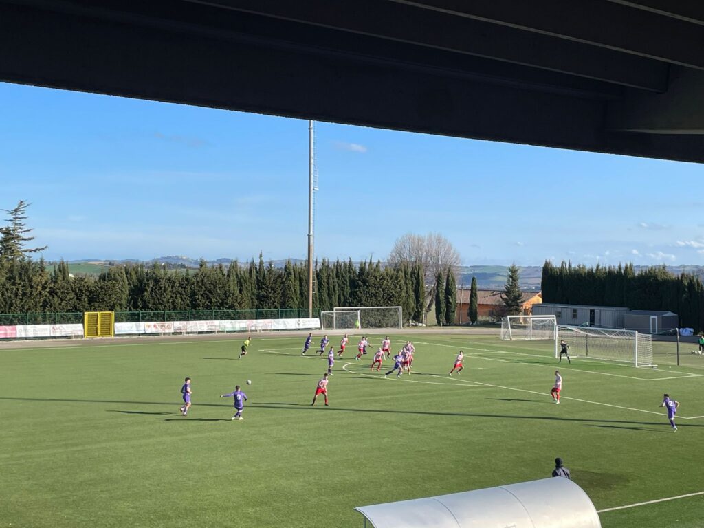 Al 21’ Badiali lancia Sbarbati, un difensore sbaglia il controllo così il 10 del Chiesanuova calcia in area di rigore, David respinge la sfera ma l’arbitro ferma il gioco per un’irregolarità. Due minuti dopo ancora Sbarbati, in contropiede due contro uno, sbaglia il passaggio verso Andrea Pasqui lanciato a rete, permettendo il recupero locale.