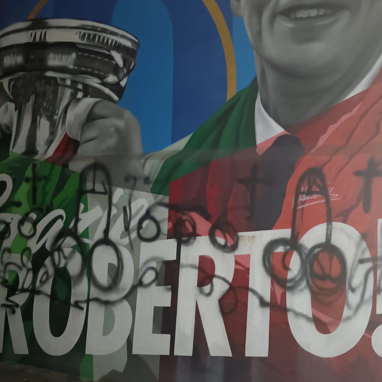 JESI, 12 febbraio 2025 – Grave atto di sfregio al murales con la figura di Roberto Mancini in via del Prato.