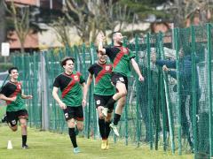 In vantaggio i locali (foto in primo piano le due formazioni schierate a centrocampo) con Ricci poco dopo il via e parità poco prima del riposo. Nella ripresa vantaggio esterno ma la formazione di casa pareggia con Emanuele Piermattei.