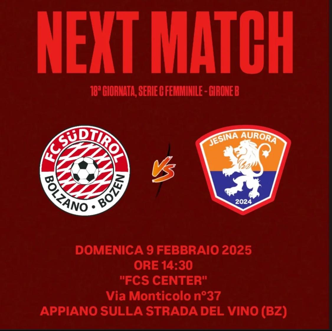 JESI, 6 febbraio 2025 – Aria delle grandi occasioni per la Jesina Aurora, che questa domenica andrà in trasferta a Bolzano per affrontare il big match contro il Sudtirol, valido per la diciottesima giornata di campionato.