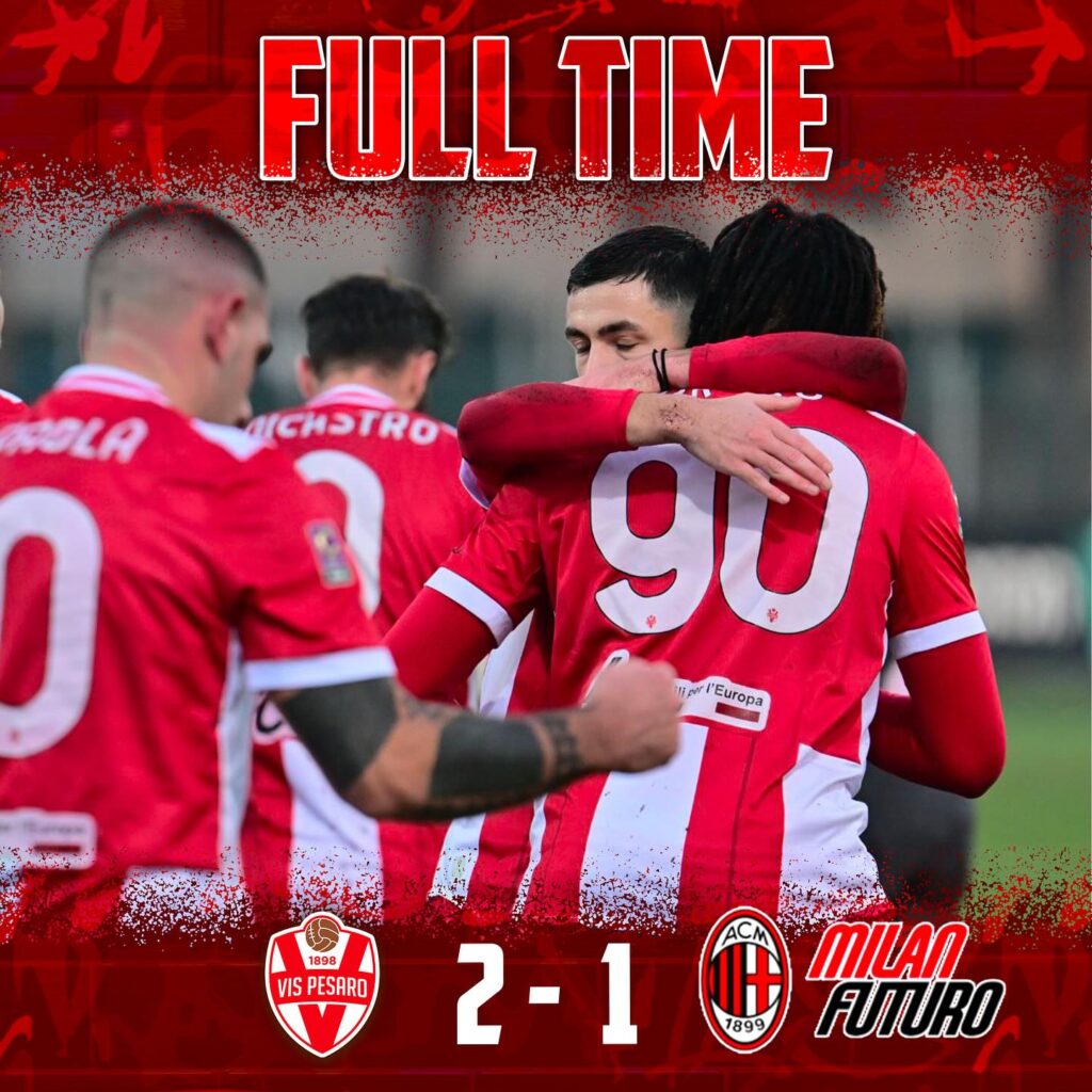 Vis in vantaggio con Okoro al 58’, rete molto discussa perché realizzata con il portiere rossonero Nava già a terra dopo un contrasto con il pesarese Paganini. Per il Sig. Gangi di Enna però, si tratta di gol regolare.