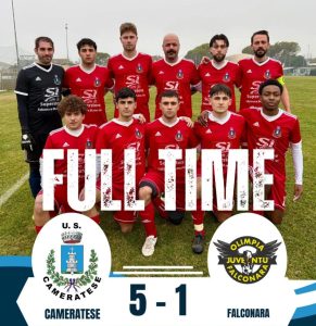 Grande risposta della Cameratese, che si riscatta subito strapazzando l’Olimpia Juventu Falconara con un 5-1 senza appello. La voglia di riscatto si fa sentire sin dai primi dieci minuti, nei quali i biancocelesti vanno a segno due volte con Moro e Barattini e colpiscono