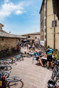 Per due giorni, 150 ciclisti provenienti da tutta Italia hanno pedalato attraversando i meravigliosi territori che fanno da cornice alla riserva naturale del Monte San Vicino, riempiendo allegramente i ristori allestiti nel Castello di Serralta e nella piazzetta di Elcito e affollando il campo base di Apiro.