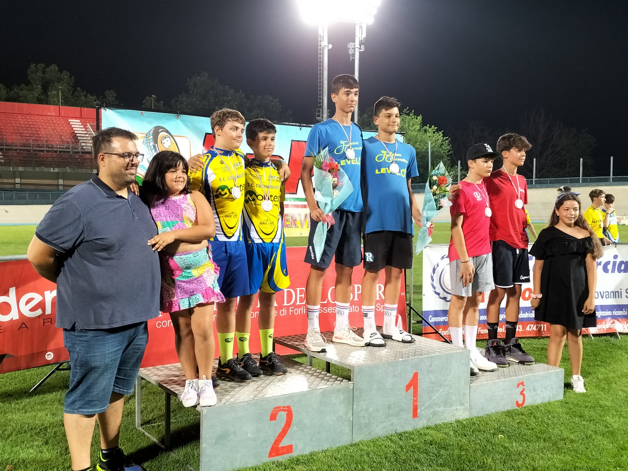 Va segnalata, inoltre, la presenza di tutti i ragazzi del Pedale Chiaravallese delle Categorie Esordienti, Allievi e Juniores che dal camp dove sono in ritiro da inizio luglio a S.Elia sono saliti tutti a Forlì o per gareggiare o per per fare il tifo ai loro compagni e vivere le emozioni della pista.
