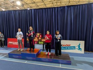 Nel Fioretto femminile terzo gradino del podio tutto marchigiano con Claudia Rotella, del Club Scherma Jesi, e Alice Gambitta del Club Scherma Ancona. 5°, 10°, 11°, 12°e 13° rispettivamente Lucrezia Monti, Stepanka Anna Nemcovà, Ginevra Guerrini, Zoe Segat e Maria Ludmila Terni, tutte del Club Scherma Jesi; 14° Nicole Calai del Club Scherma Ancona; 18° Chiara Ferrarini del Club Scherma Jesi; 19° Teresa Donatelli del Club Scherma Pesaro; 23° Maria Vittoria Trombetti del Club Scherma Jesi; 25° Ludovica Grisanti del Club Scherma La Misericordia Osimo; 26° Anna Sofia Cantarini del Club Scherma Ancona; 30° e 31° Isabella Canu e Fabiola Badiali del Club Scherma Jesi; 33° Camilla Vaccarini del Club Scherma La Misericordia Osimo; 35° Sophia Di Paolo del Club Scherma Ancona; 40° e 45°Chiara Maltoni e Ludovica Balducci del Club Scherma Jesi; 47° Vittoria Lazzeri del Club Scherma Pesaro; 59° Sami Alejandra Regina del Club Scherma Ancona; 60° Giorgia Savoia del Macerata Scherma.