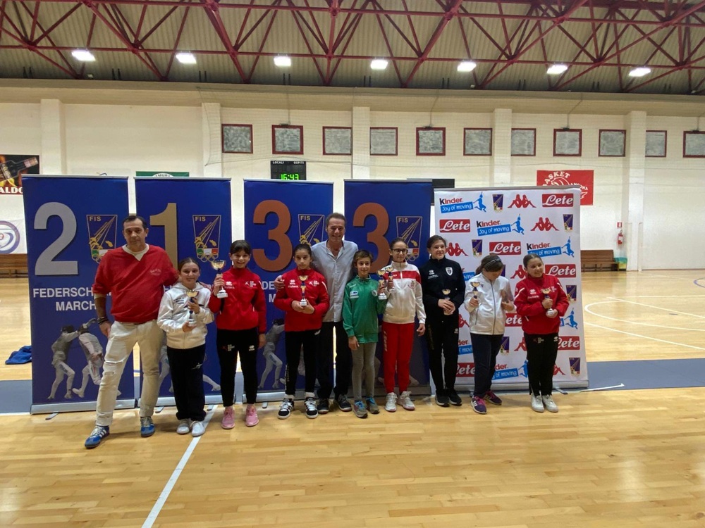 Nelle Bambine Giovanissime 1° e 3° piazzamento per Maria Elena Li Bergolis ed Emilia Caprari del Club Scherma Jesi; 3° ex aequo Mariasole Pagnani del Club Scherma Senigallia; 5° Chiara Bracalente del Macerata Scherma; 6° Elisabetta Issini del Club Scherma Recanati; 7° Claudia Bertini del Club Scherma Pesaro; 8° Giulia Merloni del Club Scherma Jesi; 10° Alice Pieroni del Macerata Scherma; 11° Killari Sopha Regina del Club Scherma Ancona; 12° Martina Censi del Macerata Scherma; 13° e 14° Akemi Chiara Panniccià e Sara Smerilli dell’Accademia della Scherma Fermo; 15° Petra Carlone del Club Scherma Ancona; 16° Vittoria Belfiore del Club Scherma Jesi; 17° Greta Izzo del Club Scherma Ancona; 18° Laura Accorroni del Club Scherma Jesi; 19° Isabela Secondini del Club Scherma Ancona; 20° e 21° Camilla Scansani e Vittoria La Cecilia del Club Scherma La Misericordia Osimo; 22° Zara Mengoni del Club Scherma Recanati; 23° Sveva Quitadamo del Club Scherma Fabriano; 24° Sveva Luzi del Club Scherma Jesi; 25° Anna Mattutini del Club Scherma Recanati; 26° Martina Monteneri del Club Scherma Fabriano.