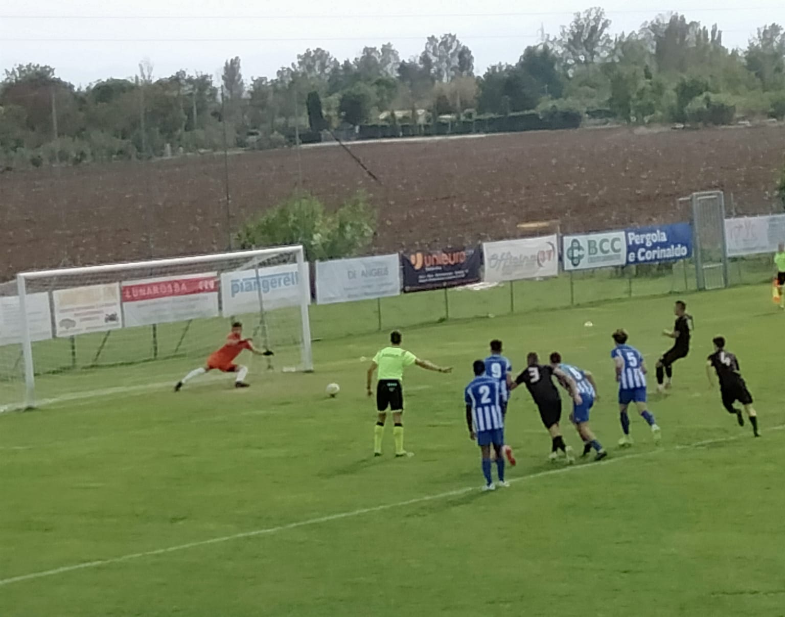 Altro rigore al 43′ rigore per fallo su Pesaresi. Sul dischetto questa volta si presenta Rossetti che sbaglia.