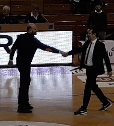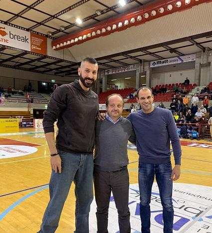 Anche Michele Maggioli, 600 presenze in serie A, 15 in Nazionale Azzurra, ‘il 5 per eccellenza’ ha festeggiato il suo addio al basket giocato al Palatriccoli in occasione della partita Termoforgia-Imola del 16 dicembre 2018.