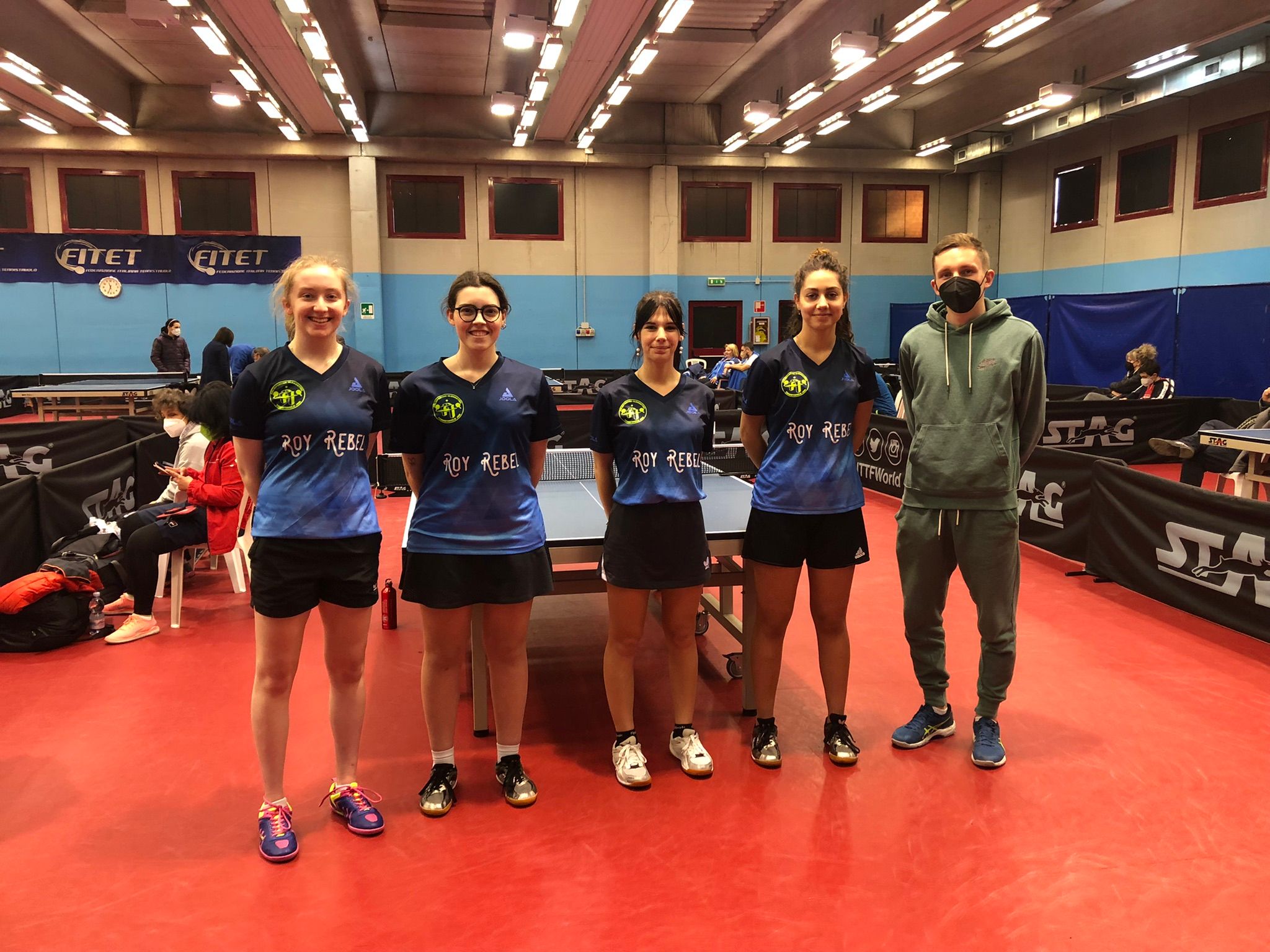 foto di primo piano: da sinistra, Mia O’Rahilly Egan, Margherita Pierella, Chiara Morri, Rachele De Luca e Sergei Mokorpolov (Coach)