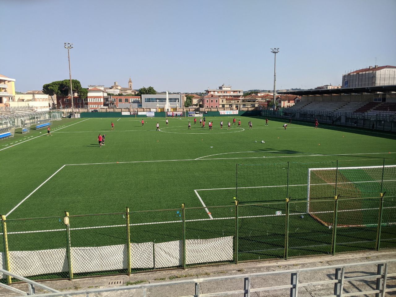 Alle 17 al Bianchelli, alla presenza di qualche decina di tifosi, i rossoblù, 27 giocatori, si sono ritrovati agli ordini del mister Aldo Clementi e del suo staff, riconfermato rispetto alla scorsa stagione, con l’unico cambiamento dettato dal preparatore atletico, tornato ad essere Massimo Massi, che nel torneo scorso aveva lasciato a torneo iniziato ad Alessandro Frezza per impegni personali.