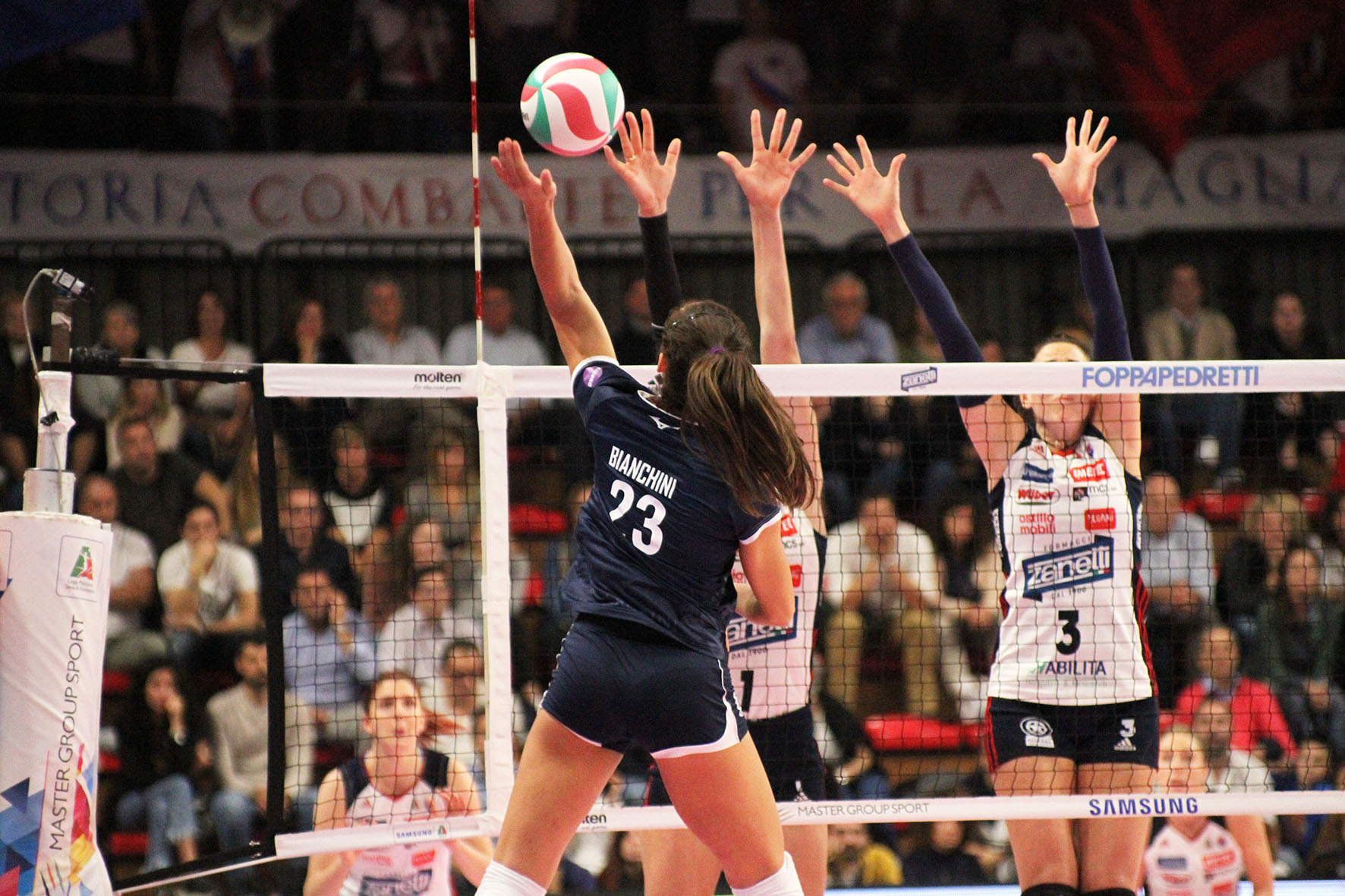 La prima assoluta al PalaTriccoli di Jesi nel giorno della sfida all’Imoco Volley Conegliano campione d’Italia in carica e vice campione d’Europa.