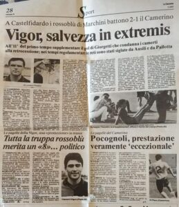 I baby vigorini dovettero disputare nel 1989 due spareggi per non retrocedere in Prima Categoria, un’onta senza precedenti per un club che appena 4 anni prima era in serie C: li vinsero entrambi, prima a Pesaro contro il Borgo Massano poi a Castelfidardo contro il Camerino, 2-1 nei tempi supplementari con reti di Ausili e poi di un ancora minorenne Giorgetti, che qualche anno dopo sarebbe arrivato in serie A, uno dei pochissimi a riuscirci partendo dalle giovanili della Vigor.