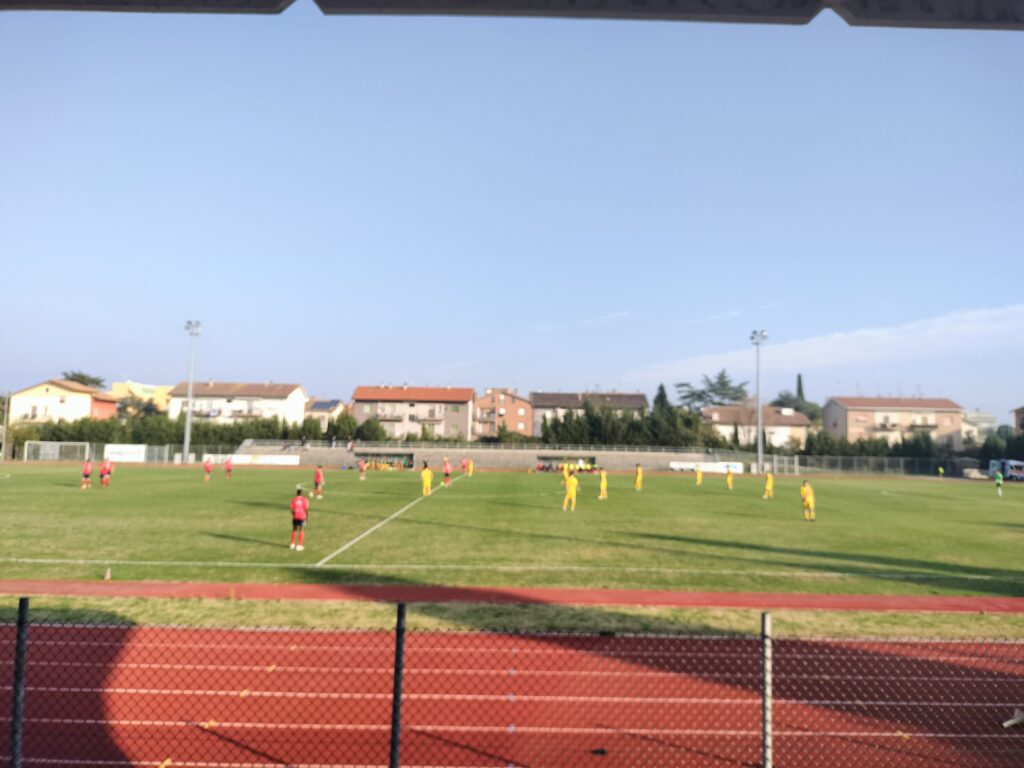 Siamo al 13′ quando la punizione di Parasecoli dalla destra viene deviata in corner da un difensore biagiotto in mezzo all’area: la Biagio resiste agli affondi ospiti, poi riparte in contropiede con Camilloni che verticalizza in area verso Morbidi, che non riesce a controllare e la Castelfrettese recupera il pallone.