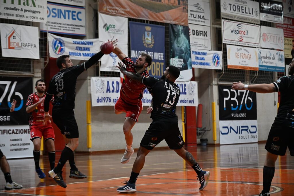 Nell’ultima partita di oggi, Cingoli ha giocato lo “spareggio” per il terzo posto contro Fondi, ininfluente per la qualificazione ma che potrebbe dare un vantaggio nel sorteggio delle Finali. Compagnucci e compagni hanno preso il match in mano già dalle prime fasi, portandosi sul 5-12 dopo 17 minuti. I laziali hanno chiuso il primo tempo a -4, sul 15-19, e nella ripresa hanno cercato di riportarsi sotto, fino a strappare il -2. Sul 30-32, però, i cingolani hanno chiuso tutti i discorsi con le due reti del definitivo 30-34.
