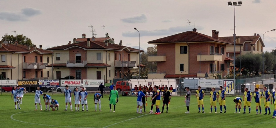 I biancorossi sollecitano per la prima volta Elezaj col corner velenoso di Parasecoli. Il portiere ex Castelfidardo si ripete sulla punizione di Polenta, ma si arrende sulla zampata in mischia sugli sviluppi di un angolo del classe 2006 Alessandroni, al primo gol stagionale. Dopo il balzo determinante di Elezaj sull’incursione di Parasecoli, il Tavullia Valfoglia pareggia con la girata da opportunista di Vegliò su corner di Giunchetti. Il nuovo vantaggio biancorosso viene negato dal salvataggio di un difensore nei pressi della linea di porta sulla deviazione di Brunori. A inizio ripresa Vegliò sfiora la doppietta con un destro fuori di un soffio dopo aver conquistato palla al limite. Il sorpasso viene comunque autografato da Giunchetti sullo splendido lavoro del solito Vegliò che timbra anche la traversa pochi minuti dopo. La Castelfrettese aumenta il forcing nel finale, ma non incide. Il Tavullia Valfoglia si riscopre per la prima volta corsaro.