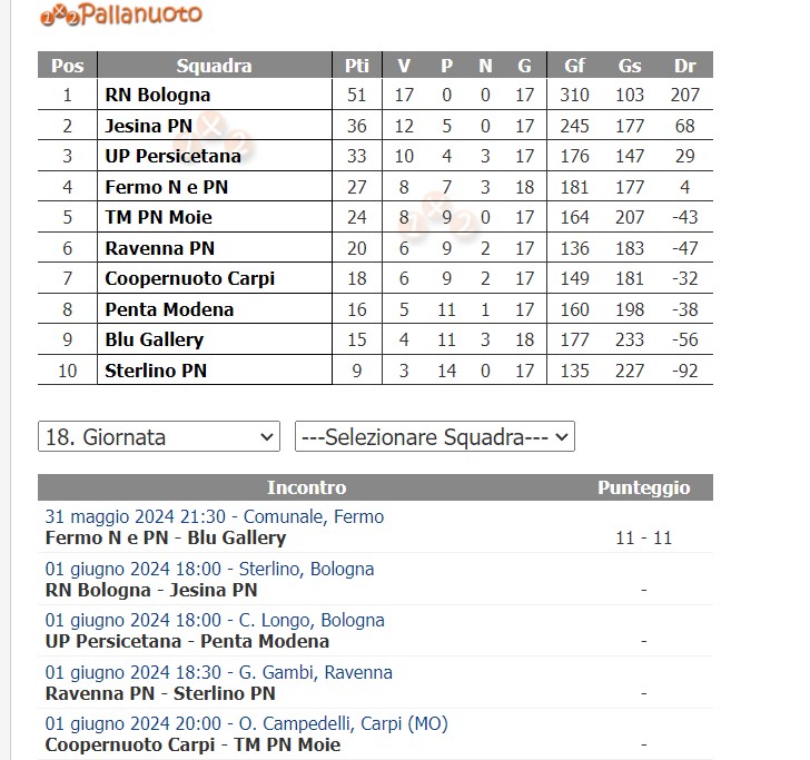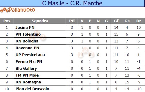 JESINA PALLANUOTO – Busacca, Zannini G. 1, Mattei 4, Coacci, Zannini L, 2, Ciampichetti, Moreschi, Mancinelli 1, Gara, Paolucci 1, Chiorrini, Zannini T., Carletti. All. Trumbic