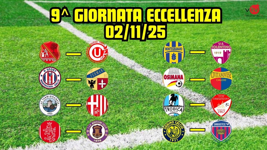 OTTAVA GIORNATA: Aurora Jesi-Labor, Olimpia Ostra Vetere-Monsano, Rosora Angeli-Real Sassoferrato, Sampaolese-Terre Del Lacrima, Serrana-Urbanitas Apiro, Corinaldo-Villa Strada, Valle Del Giano-Chiaravalle, Monte Roberto-Avis Arcevia