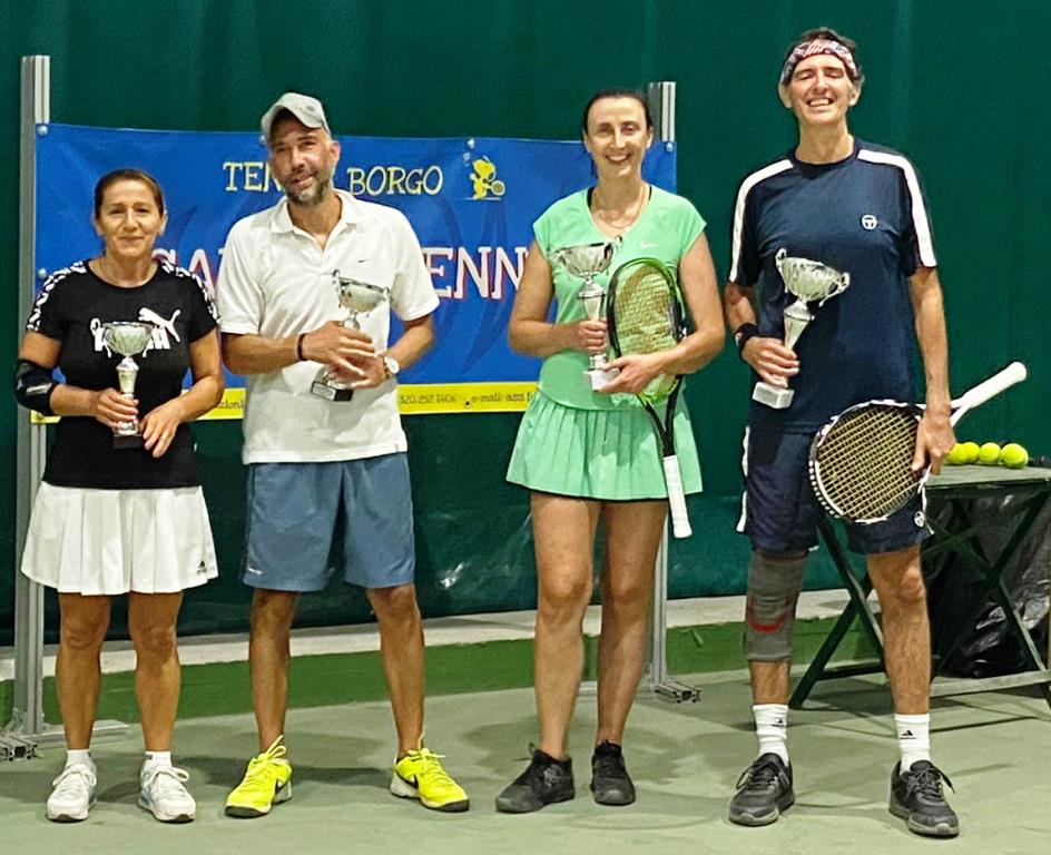 Invece sono state 18 le coppie protagoniste del torneo di doppio misto, che ha visto primeggiare Gianni Regno e Barbara Piersigilli vittoriosi per 7/5-6/4 sulla coppia Mauro Cipriani e Cristina Guerci.