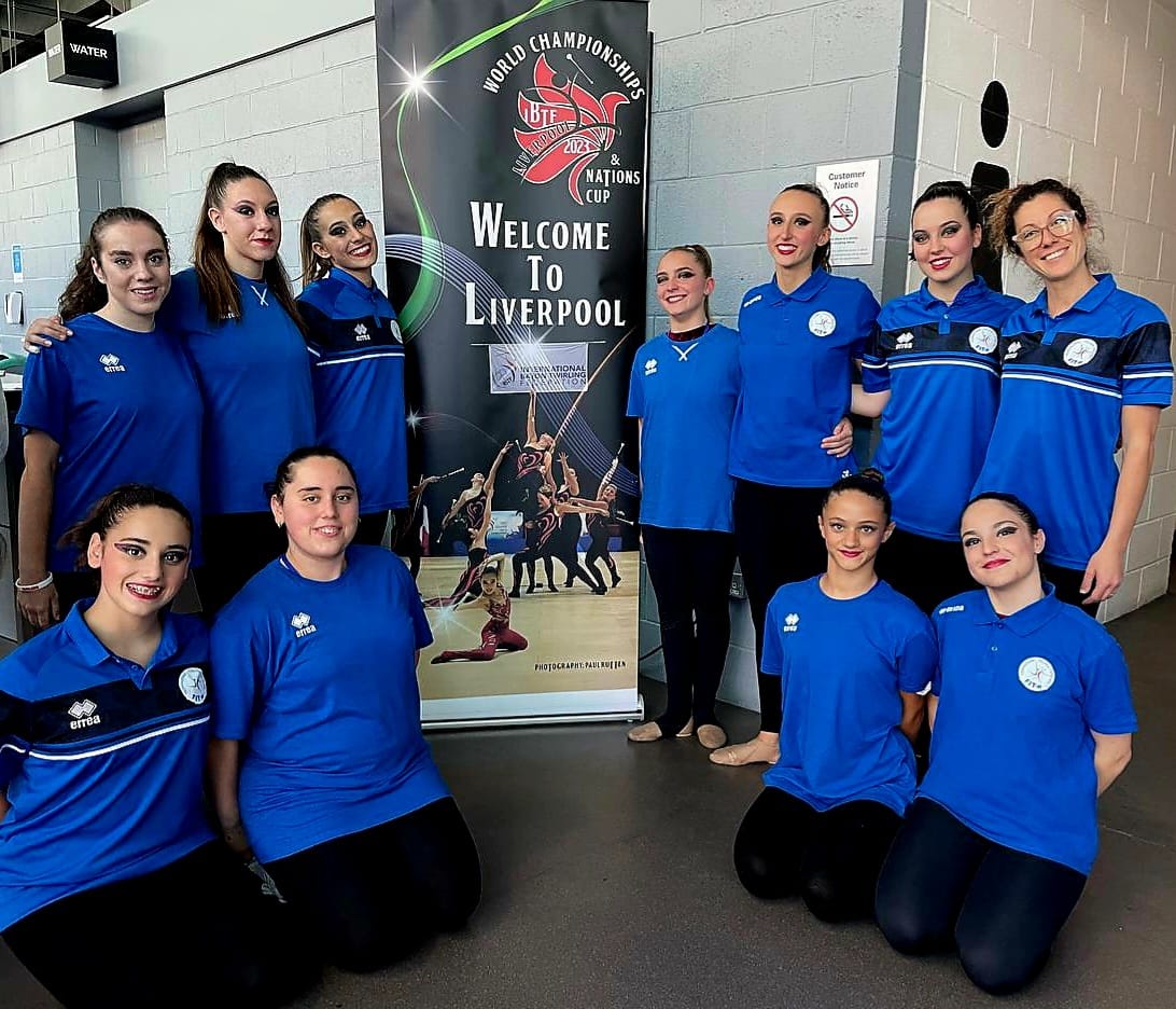 L’artistic team livello A della Lg2 Vallesina che ha vinto l’oro a Liverpool